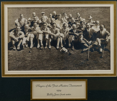 historic first generation photograph of tournament founder Bobby Jones and other golfers from the inaugural Masters Tournament held at Augusta National Golf Club.
