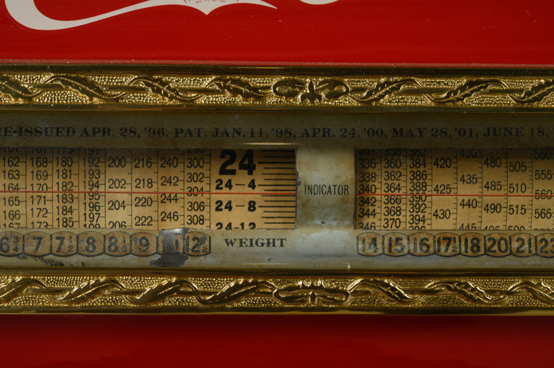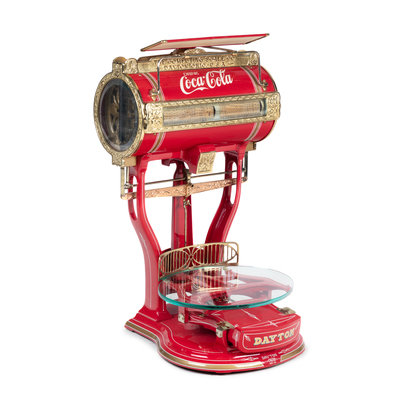 A Red Dayton Computing Scale with Coca-Cola Advertisement