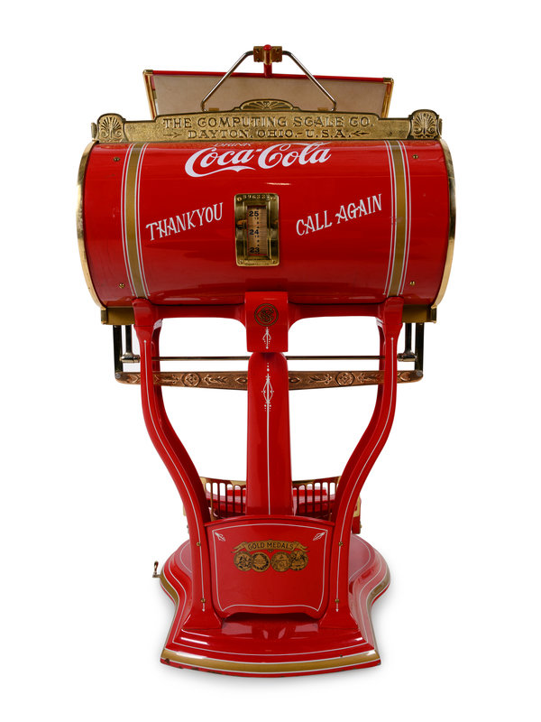 the maker's plaque reads The Computing Scale Co., Dayton, Ohio, U.S.A.', the barrel with a Coca-Cola advertisement that reads Thank you, Call Again.