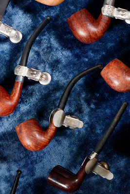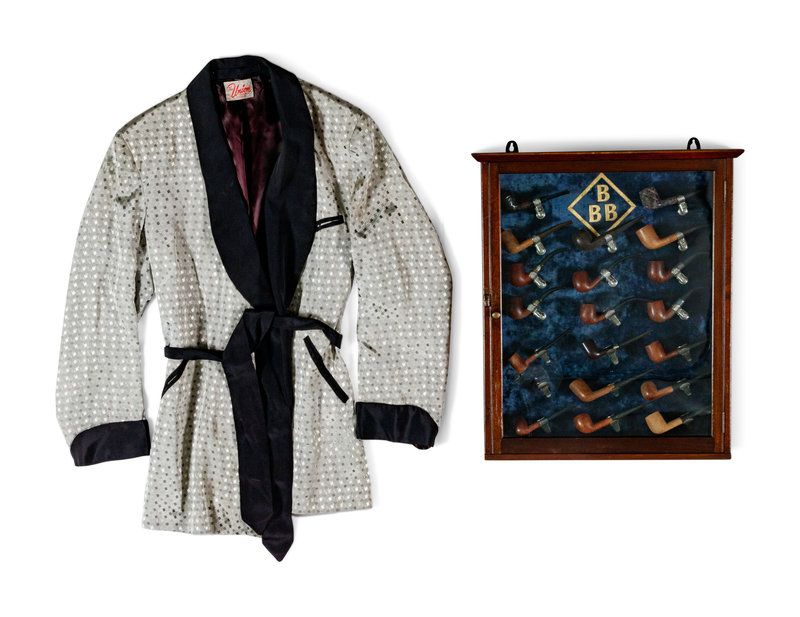 A Britain's Best Briar High Class Pipes Wall Case with Pipes and Smoking Jacket