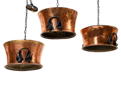Three Copper and Metal Light Fixtures