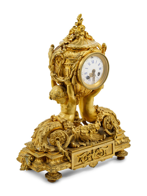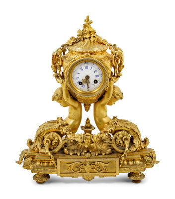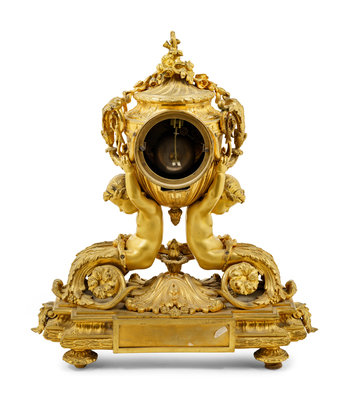 A Louis XV Style Gilt Bronze Mantel Clock