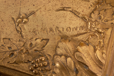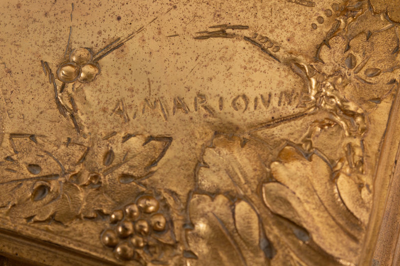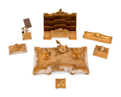 A French Gilt Bronze and Onyx Seven-Piece Desk Set by Albert Marionnet (French, 1852-1910)