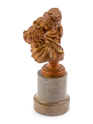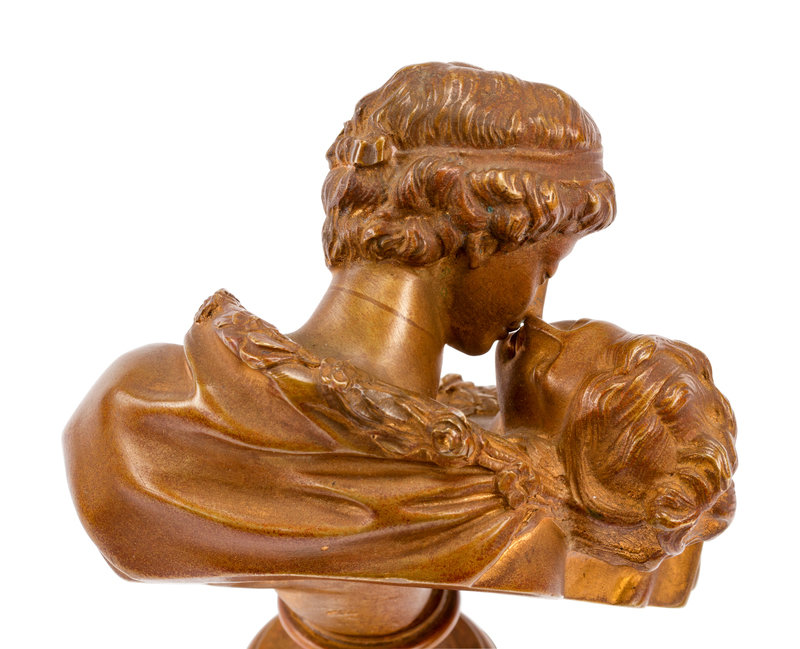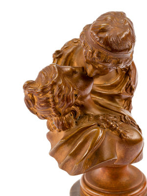 A French Gilt Bronze and Marble Bust of Lovers After Jean-Antoine Houdon