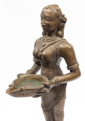 An Indian Patinated Metal Figure of a Standing Deity