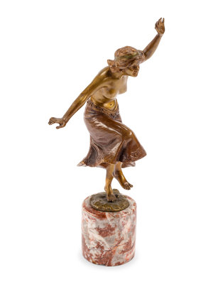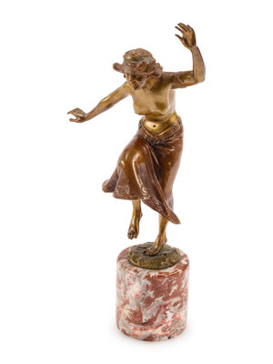An Austrian Gilt Bronze Figure of a Dancer on a Marble Base