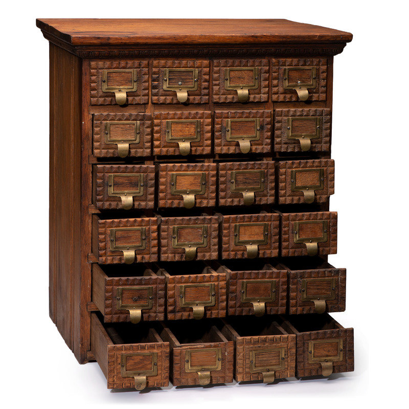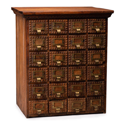 A Wooden Twenty-Four Drawer Card Filing Cabinet