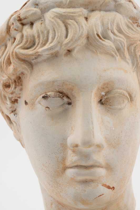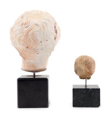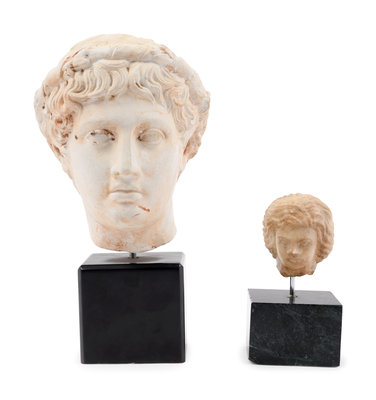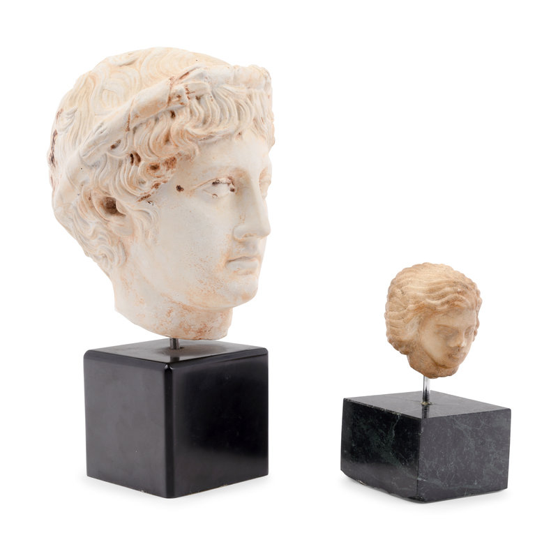 mounted to a base, with a mounted Roman style marble head of a woman.