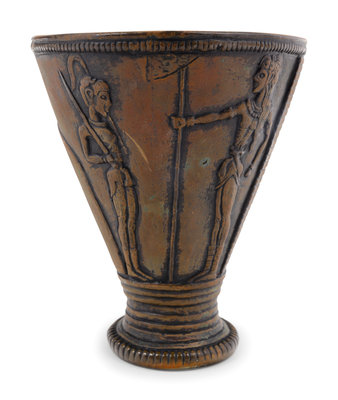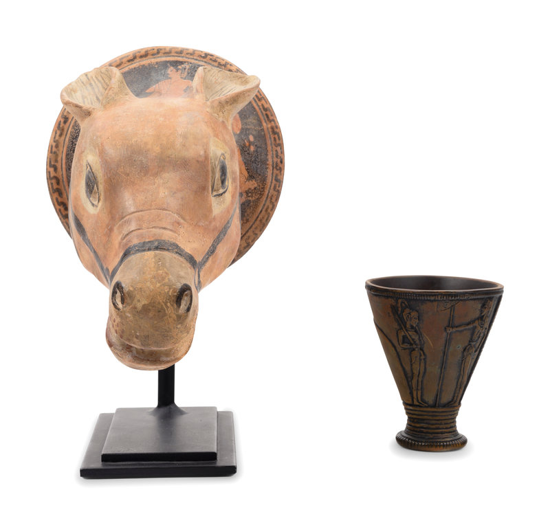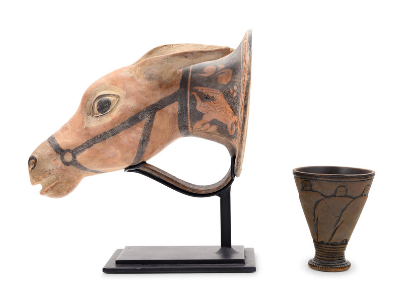 A Red-Figured Mule Head Rhyton after the Antique and a Minoan Style Bronze Goblet