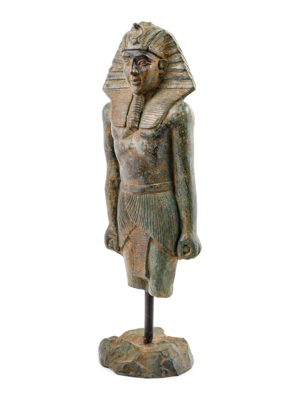 An Egyptian Style Bronze Portrait Sculpture of a Pharaoh