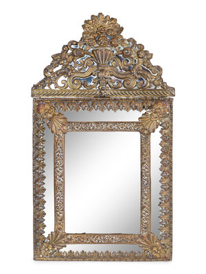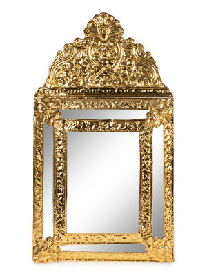 Two Dutch Baroque Style Repousséd Brass Mirrors