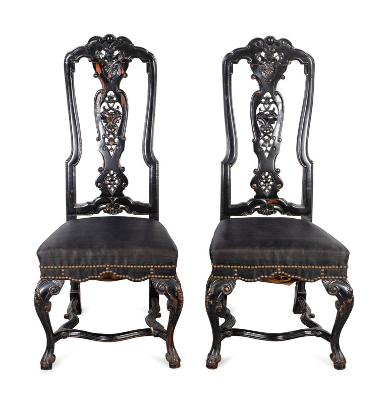 A Pair of Portuguese Rococo Style Lacquered Side Chairs