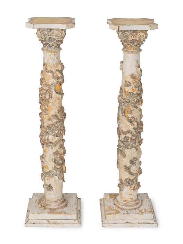 A Pair of Italian Neoclassical Style Carved and Painted Pedestals