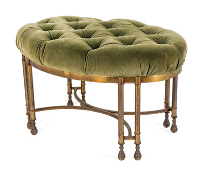 A Neoclassical Style Button-Tufted Velvet -Upholstered Gilt-Metal Stool