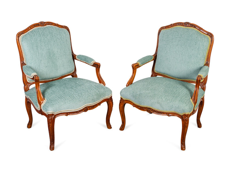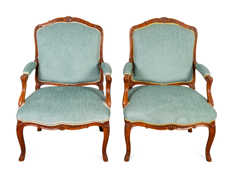 A Pair of Louis XV Style Mahogany Fauteuils en Cabriolet
