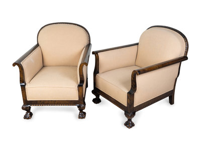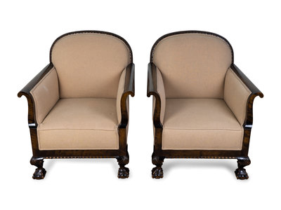 A Pair of Georgian Style Upholstered Mahogany Armchairs