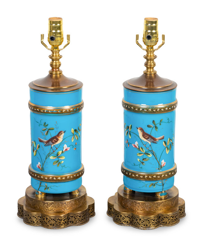 A Pair of Victorian Hand Painted Bristol Glass Vases