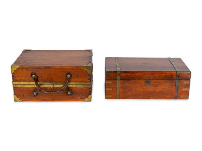 Two English Campaign Style Brass-Bound Boxes