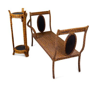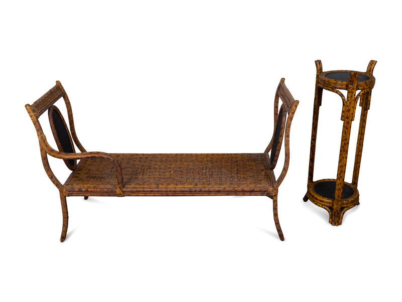 A Victorian Grain-Painted Bamboo and Cane Work Bench and Jardiniere Stand