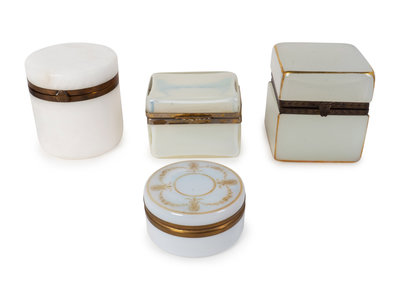 A Group of Four Gilt White Opaline Glass Table Caskets