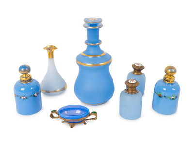 Seven Blue Opaline Glass Articles