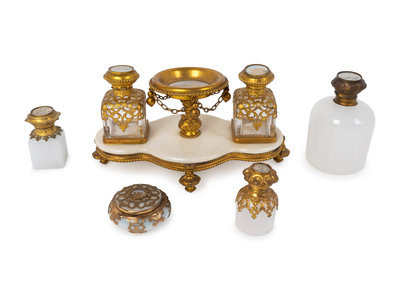 A Group of Three Gilt Bronze Mounted Opaline Glass Articles