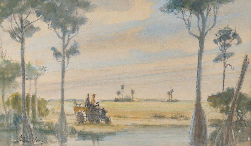 Florida Landscape with Figures on Tractor