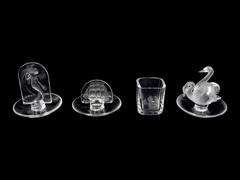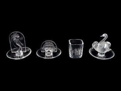 Three Lalique Ring Trays and an Orrefors Toothpick Holder