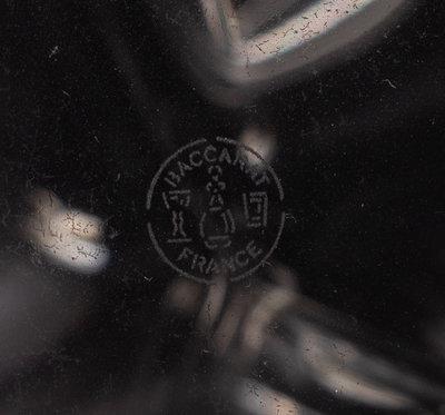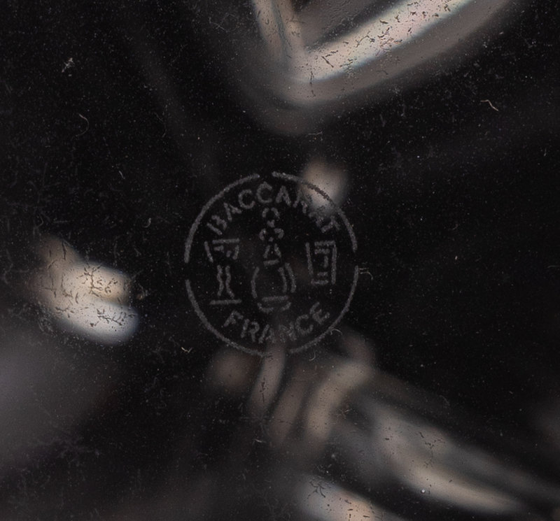 Comprising a Baccarat diamond-form decanter, a Steuben ovoid decanter, an Orrefors decanter, and a decanter etched with a sailboat and inscribed FN251b LK.