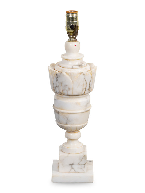 A Carved White Marble Urn-Form Table Lamp