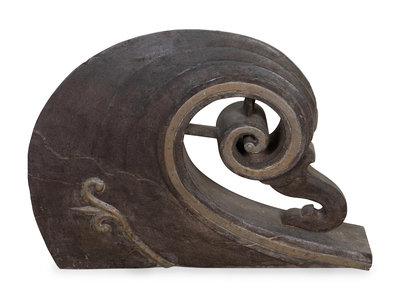 A Carved and Painted Scroll-Form Gondola Prow