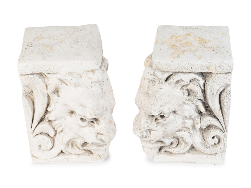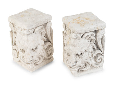 A Pair of White Ceramic Lion's Head Block-Form Bookends
