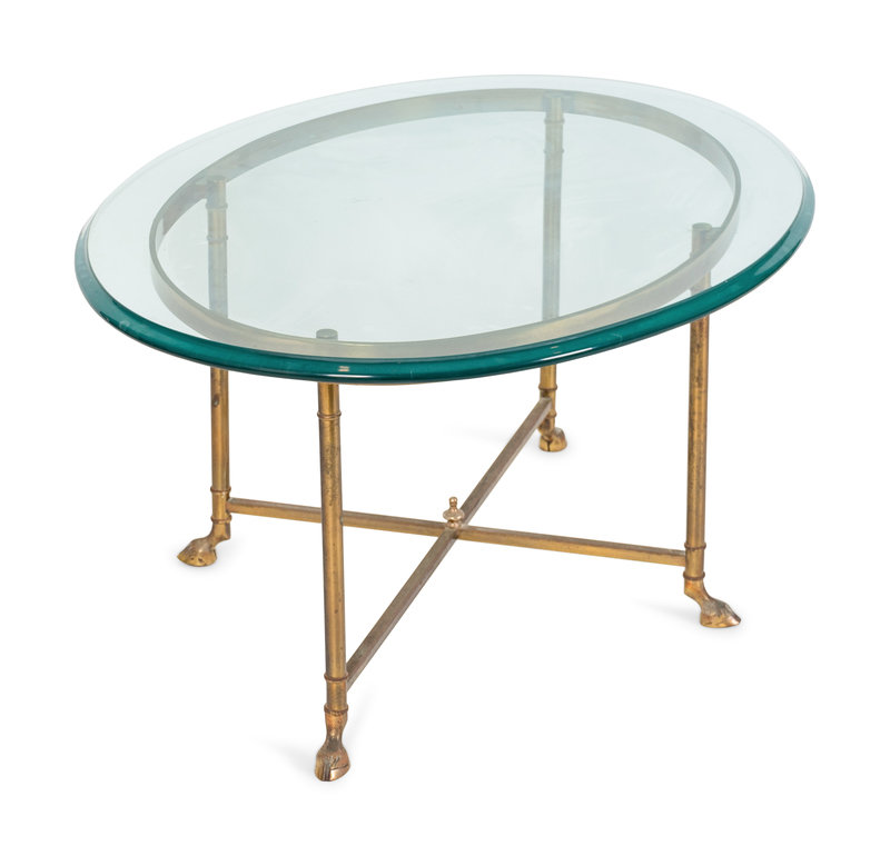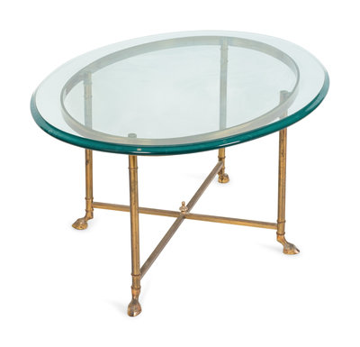 A Contemporary Brass and Glass Oval Coffee Table