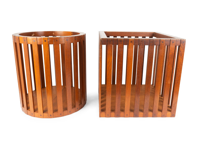 A Pair of Mid-Century Modern Slatted Mahogany Drum Tables