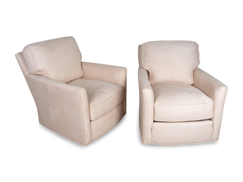 A Set of Four Micro-Suede Upholstered Swivel Club Chairs
