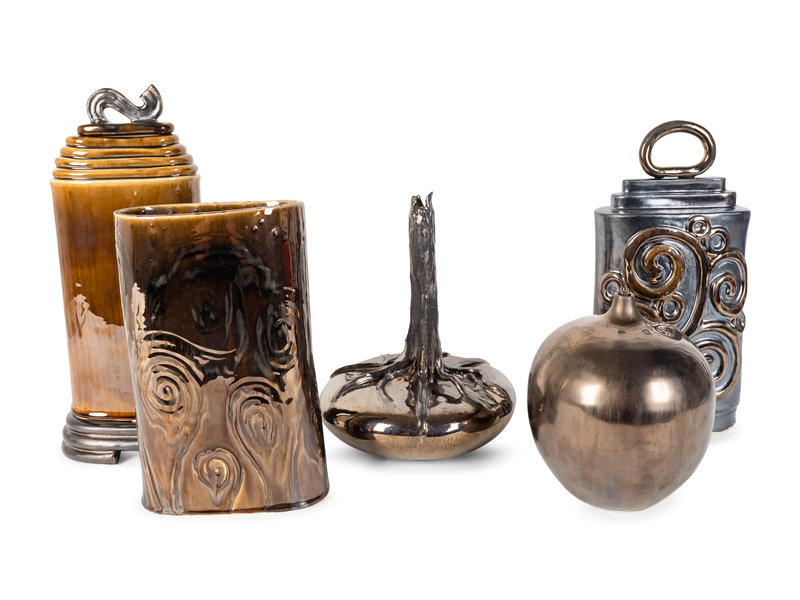 Five Harriet Bernbaum Metallic-Glazed Studio Ceramics