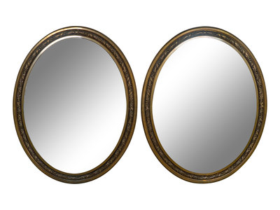 A Pair of Brass Framed Beveled Theatre Mirrors