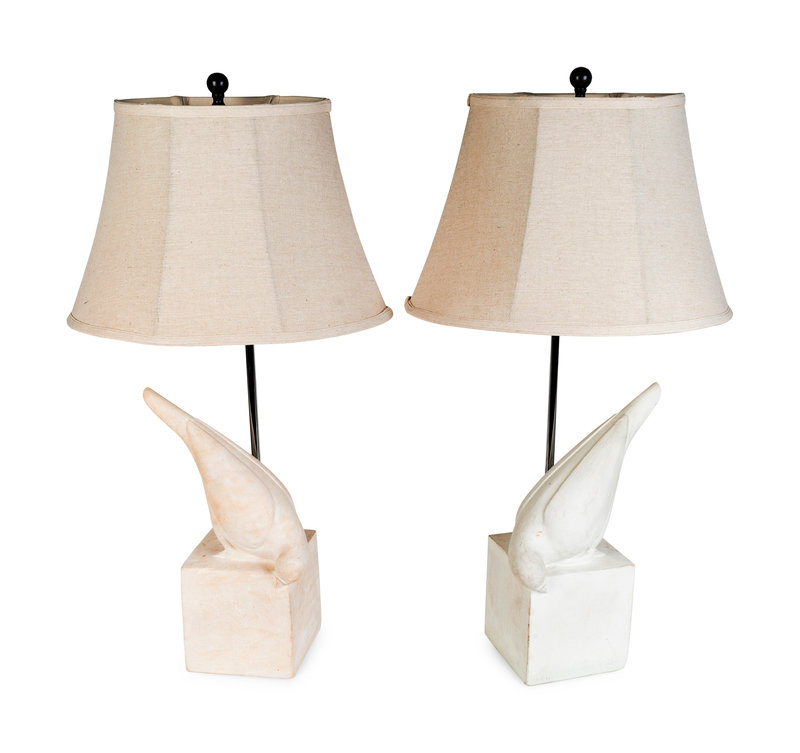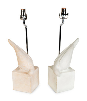 A Pair of Christopher Guy Colombe Gauche Carved Limestone Table Lamps