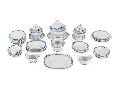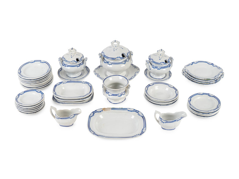 A 42-Piece English Opaque Blue and White Porcelain Miniature Tea Set