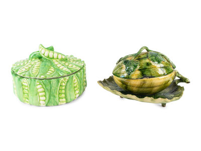 Two Glazed Ceramic Vegetable-form Serving Bowls