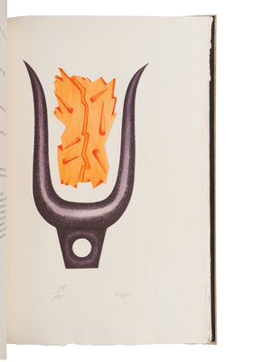 Folio. Title and headlines printed in various colors; 3 hand-colored etched plates by Michèle Forgeois, each numbered and signed in pencil. Original half cloth and boards, gilt-lettered, uncut; matching slipcase.