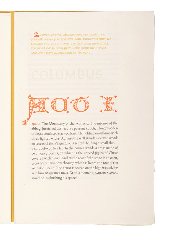 [ALLEN PRESS]. KAZANTZAKIS, Nikos (1883-1957). Christopher Columbus. Kentfield, CA: Allen Press, 1972.