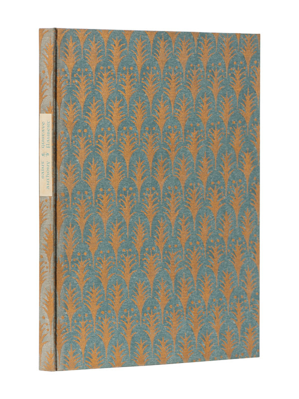 Folio. With many illustrations, including a full-page wood engraving of Saint Anthony in meditation by Odilon Redon. Translated by Lafcadio Hearn and edited by Francis Carmody. In original, desert-inspired cloth binding with a repeating, gilt palm tree motif on a blue-green background. Paper spine label. Glassine.