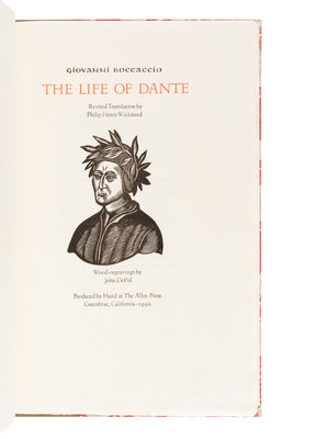 [ALLEN PRESS]. BOCCACCIO, Giovanni (1313-1375) The Life of Dante. Greenbrae, CA: The Allen Press, 1992.