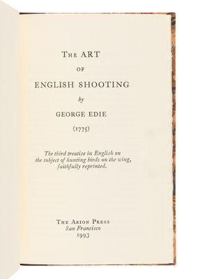 [ARION PRESS]. EDIE, George. The Art of English Shooting. San Francisco: The Arion Press, 1993.
