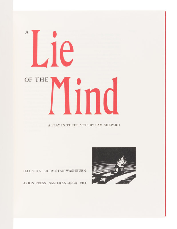 [ARION PRESS]. SHEPARD, Sam (1943-2017). A Lie of the Mind. San Francisco: The Arion Press, 1993.