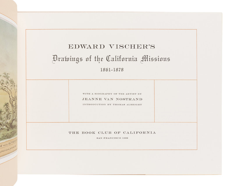 [BOOK CLUB OF CALIFORNIA – ARION PRESS]. VAN NOSTRAND, Jeanne. Edward Vischer’s Drawings of the California Missions 1861-1878. San Francisco: The Book Club of California, 1982.