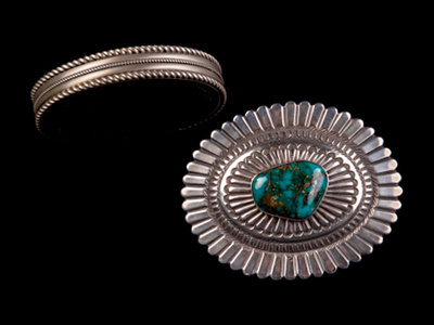 Sterling Silver Belt Buckle with Turquoise Stone and Sterling Silver Bracelet