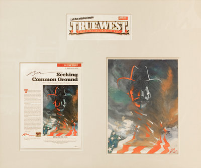 Red State, Blue State Cowboy #9, with a signed page from the January 2021 issue of True West magazine in which the art appeared, 2020