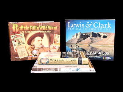 Six Books about Buffalo Bill and Lewis & Clark: Buffalo Bill's Wild West: An American Legend by R.L. Wilson with Greg Martin featuring the Michael Del Castello Collection of the American West; Buffalo Bill and the Wild West by The Brooklyn Museum, Museum of Art-Carnegie Institute, and Buffalo Bill Historical Center; The Wild West by G. Schomaekers; William Clark and the Shaping of the West by Landon Y. Jones; The Saga of Lewis and Clark into the Uncharted West by Thomas Schmidt and Jeremy Schmidt; Lewis & Clark: Voyage of Discovery by Stephen E. Ambrose.